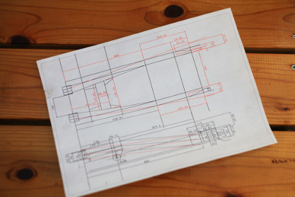 ●純正を採寸した後 CADを使って使う素材に 合わせて図面作成。 今回の最大の問題は、サイドメンバーの タテ曲げが入ることです。横曲げもありますので、 かなり慎重に進めます。 CADソフトは、フリーの物を試して、もっとも適 したもの |