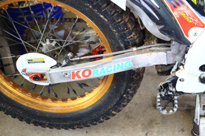 | このスイングアーム ただいまKO大田が使用中です。バネ下で850gの軽さはすばらしいの一言、リヤのコントロールが やりやすいのはもちろん、ジャックナイフをしたときの滞空時間が明らかに違います。 ガレ場でも、リヤが綺麗に凸凹をトレースしているのが判ります。 どこかのワークスマシンのように、ハブをマグネシュウムで作った場合 アルミ比でおそらく300gほどの軽量化しか達成できません、 それを考えると、850グラムは驚異的です。 ワークスライダーや誰も経験したことのない心地よさ!!! |